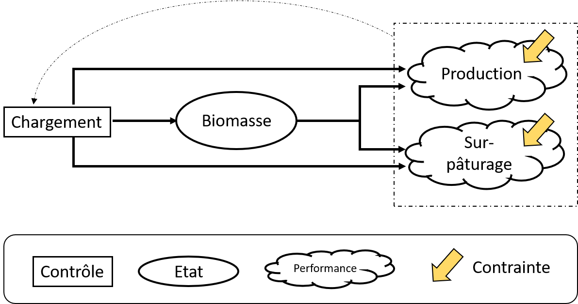 L’herbe est une ressource renouvelable dont le taux de croissance dépend de la période de l’année mais aussi de sa hauteur et des condition météorologiques. Une gestion fine du pâturage demande donc de fixer de manière dynamique, le niveau de chargement (nombre d’animaux par hectare) pour nourrir les animaux tout en évitant les phénomènes de surpâturage. Du fait de l’incertitude sur la croissance de l’herbe liée aux conditions météorologiques, l’enjeu est de mettre en œuvre des séquences de pâturage qui soient non seulement productives mais aussi robustes et adaptables.